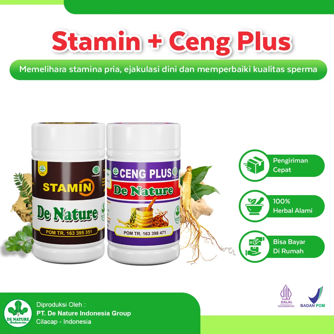 Obat Stamin dan Ceng Plus De Nature bantu mengatasi ejakulasi dini pada pria secara efektif. Terbuat dari bahan alami 100%, aman tanpa efek sampaing, sudah teruji secara klinis terdaftar oleh BPOM dan MUI.