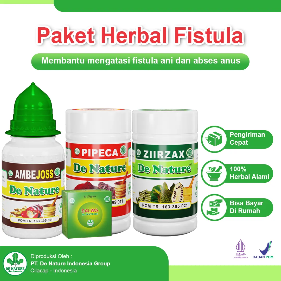 Paket Obat Ambejoss, Pipeca, Zirzax dan Salep Salwa merupakan kombinasi produk herbal unggulan dari De Nature Indonesia yang diformulasikan khusus untuk membantu mengobati fistula ani dan abses anus secara efektif. Terbuat dari bahan-bahan alami pilihan yang telah teruji khasiatnya.