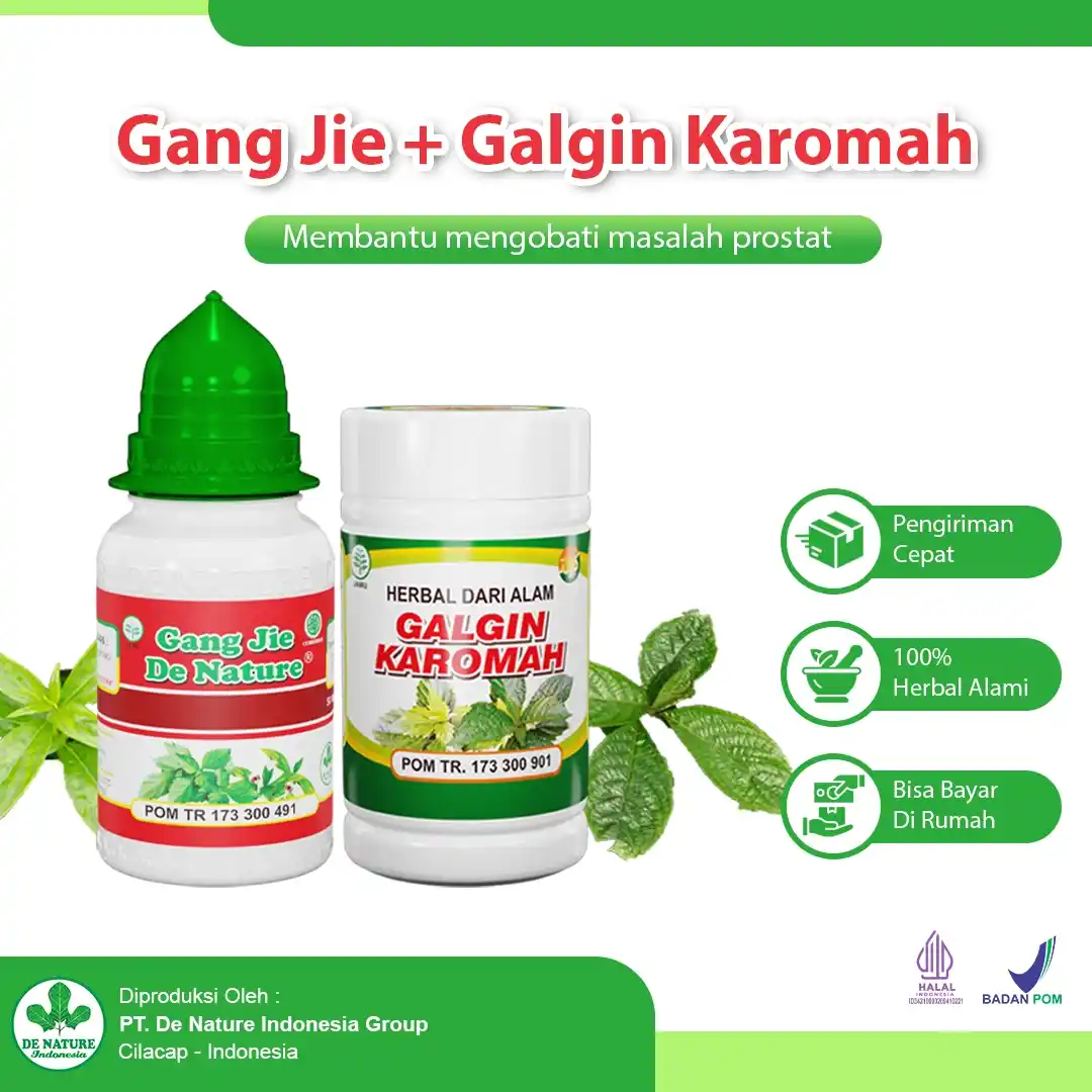 Paket Obat Galgin Karomah dan Gang Jie merupakan kombinasi produk herbal unggulan dari De Nature Indonesia yang diformulasikan khusus untuk membantu mengatasi gangguan prostat secara efektif. Terbuat dari bahan-bahan alami pilihan yang telah teruji khasiatnya.